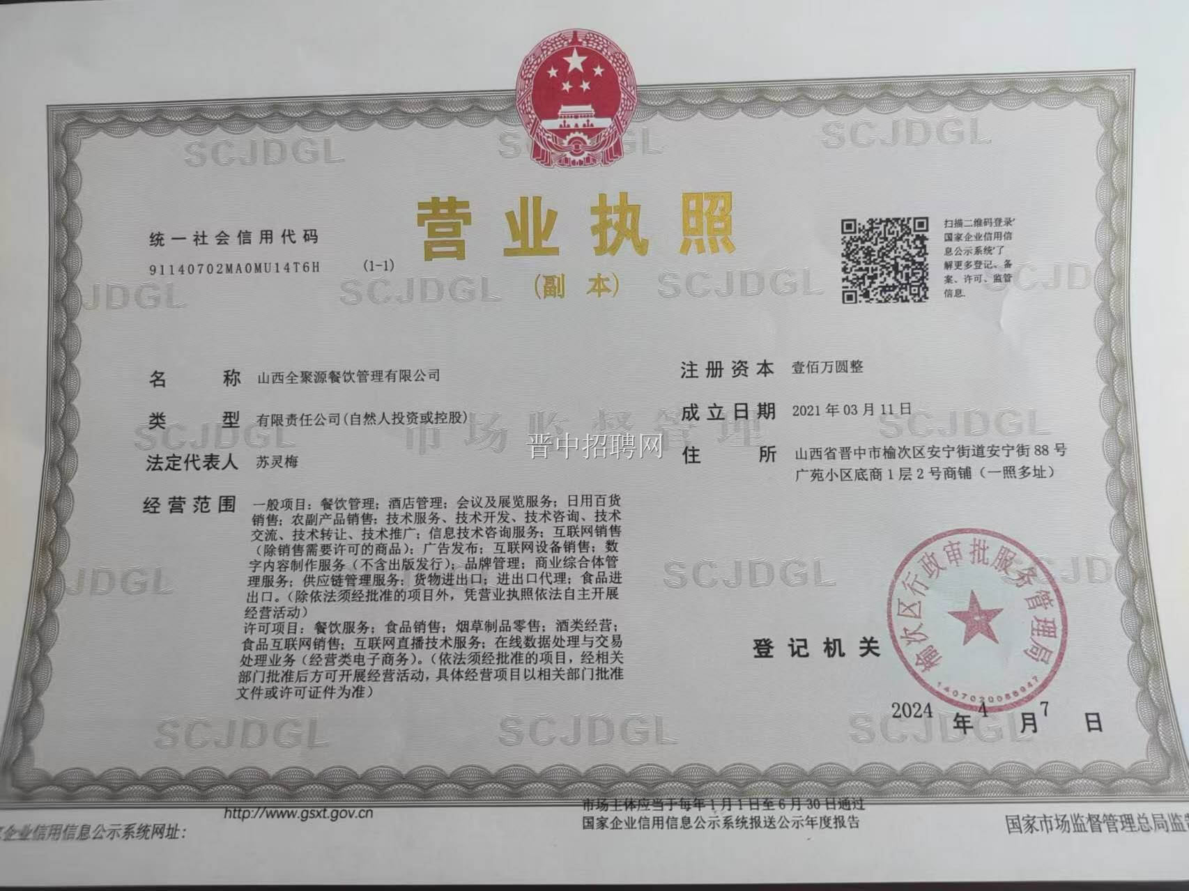 山西全聚源餐饮管理有限公司 实名认证